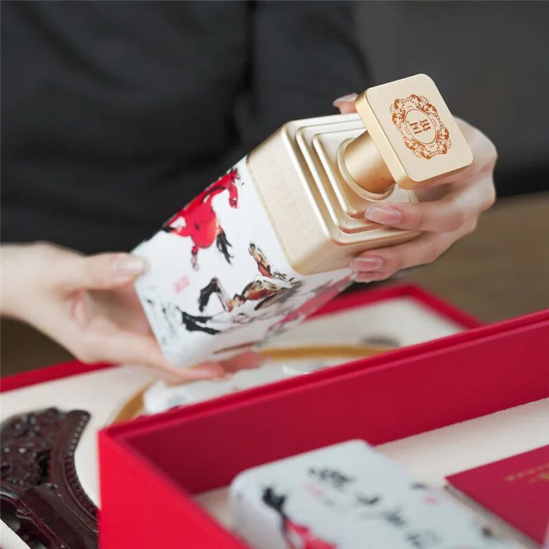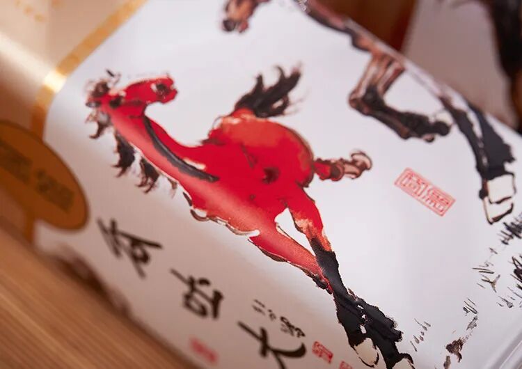 不曾想,这款酒竟有如此惊喜——瓶身奔腾的骏马,正是徐悲鸿大师的名画《天马六骏》,可供端瓶细赏,感受骏马驰骋而来的豪迈气势。